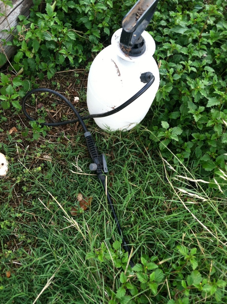 Below is the sprayer I use, and the bug infected plants I sprayed today! The bugs fell right off after spraying.