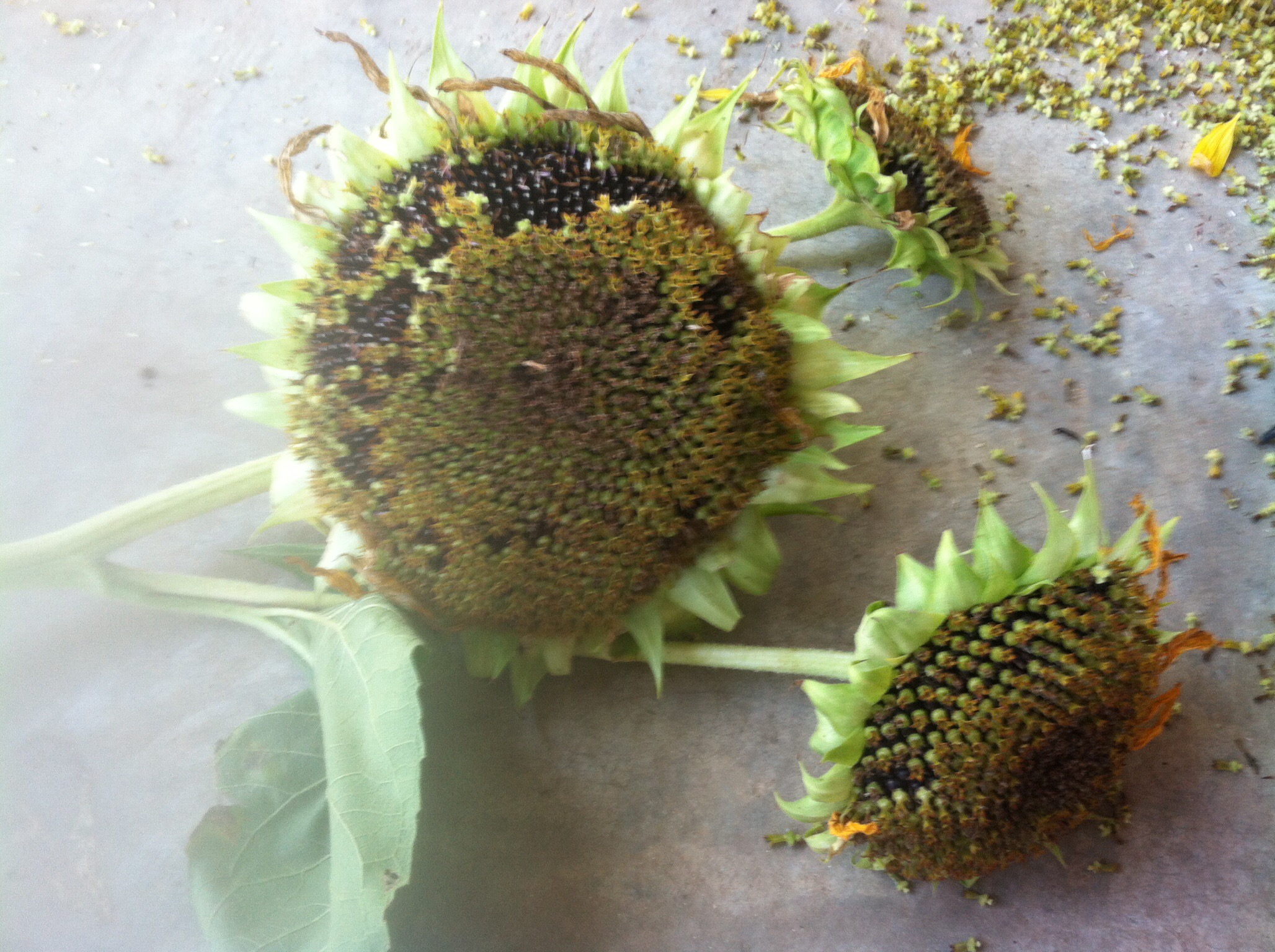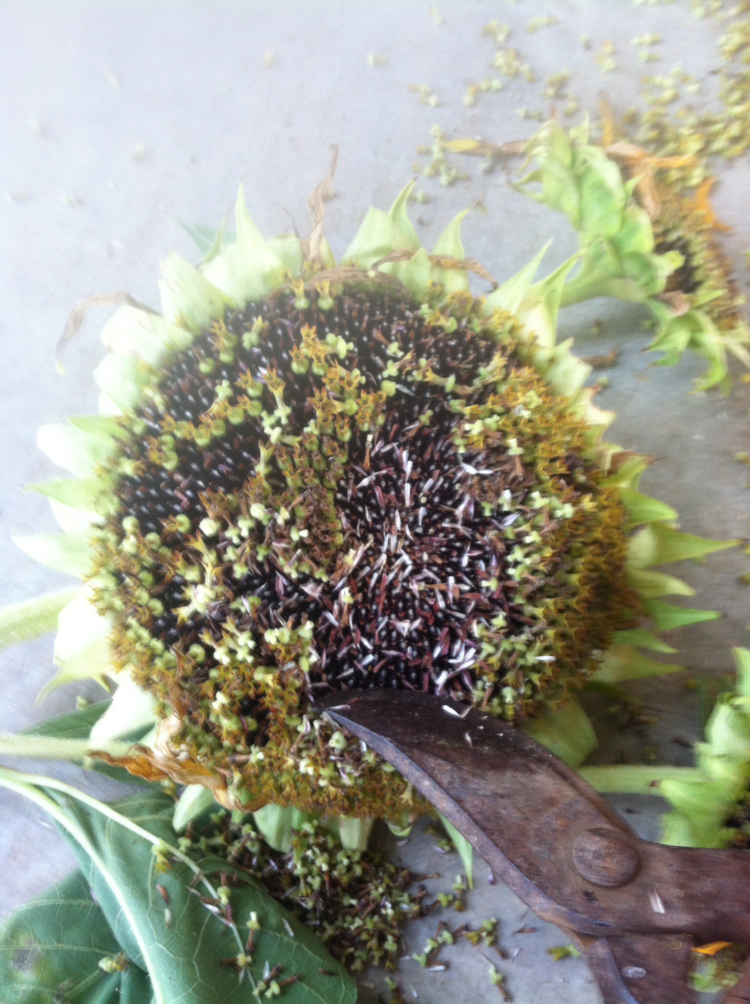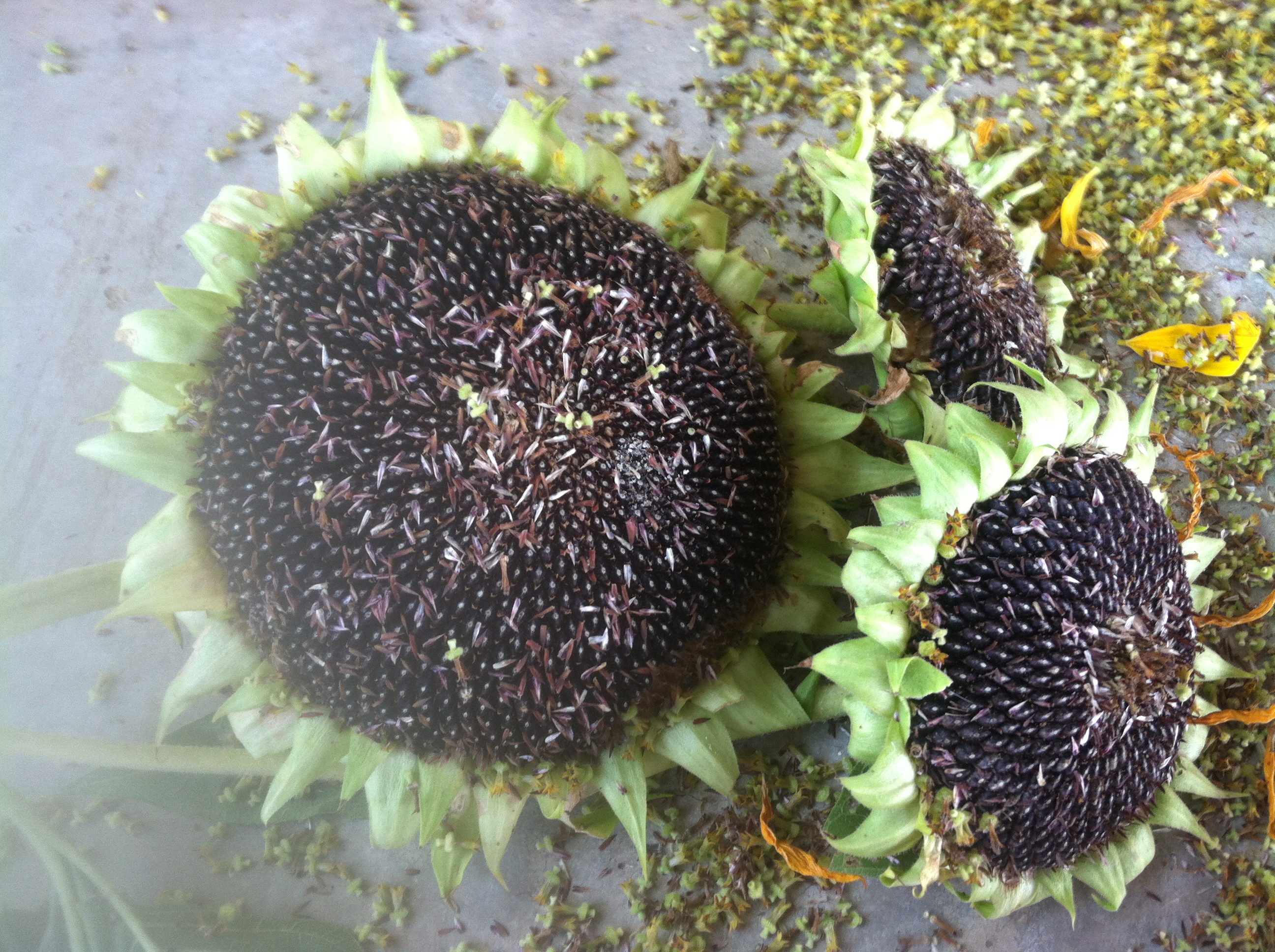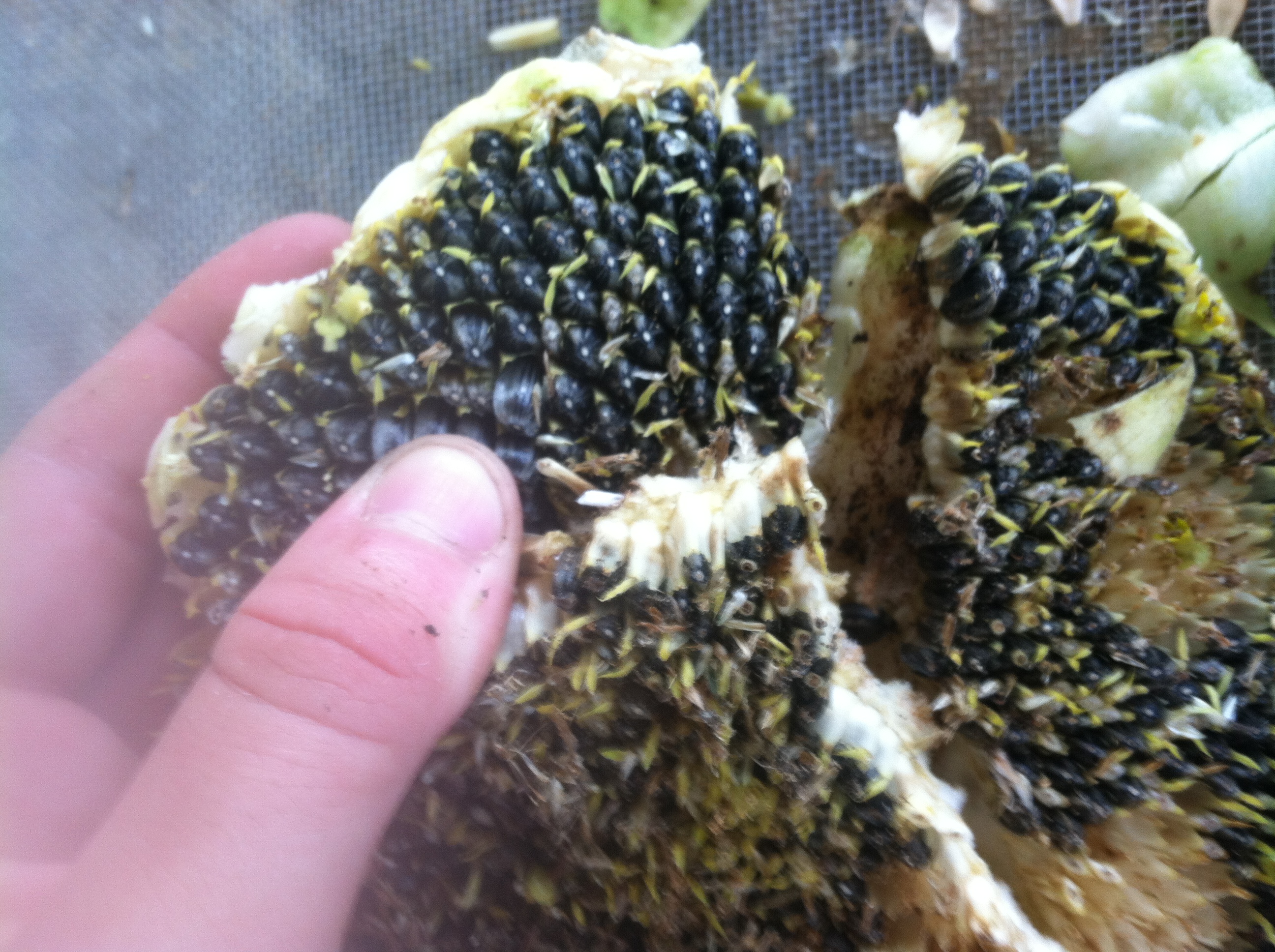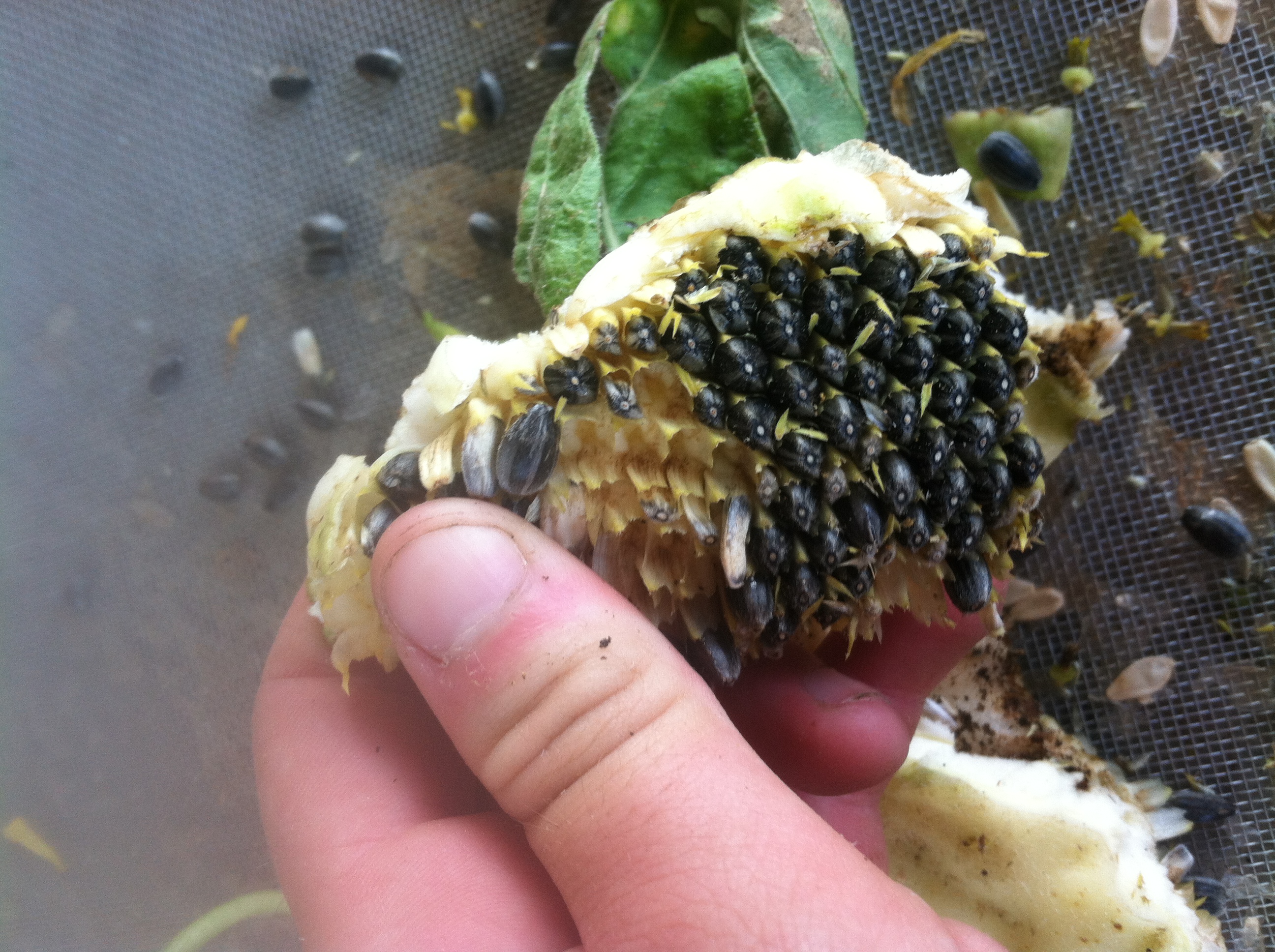 To take the seeds out of the head, break apart the head into sections and then rub your finger along the seeds so they pop out of their little holders. Make sure you have the screen underneath!