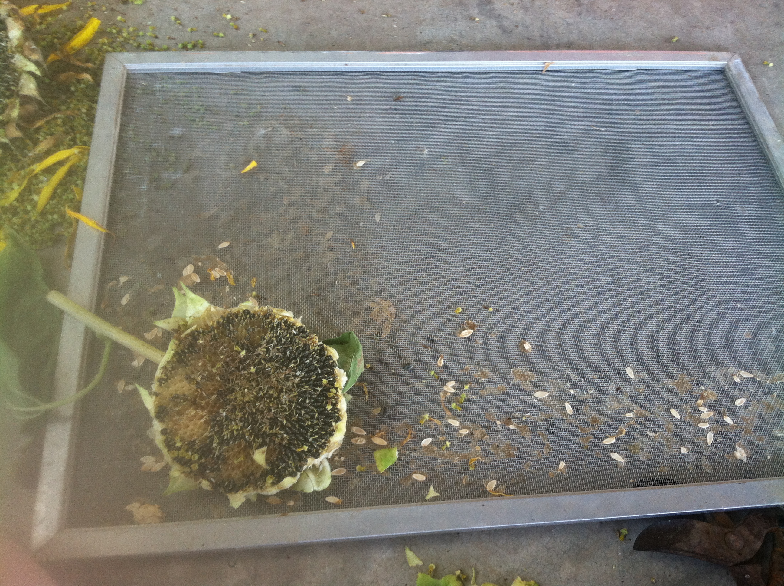 Use a screen (we used an old window screen) for drying the actual seeds.