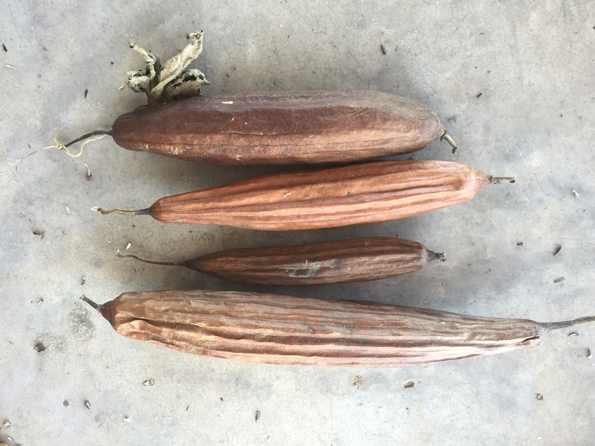 Well it is a loofah plant that produces loofahs. “What is a loofah” you ask? Well you know those sponge looking things you use in the shower to scrub off dead skin? That’s a loofah! AND they grow on a plant!