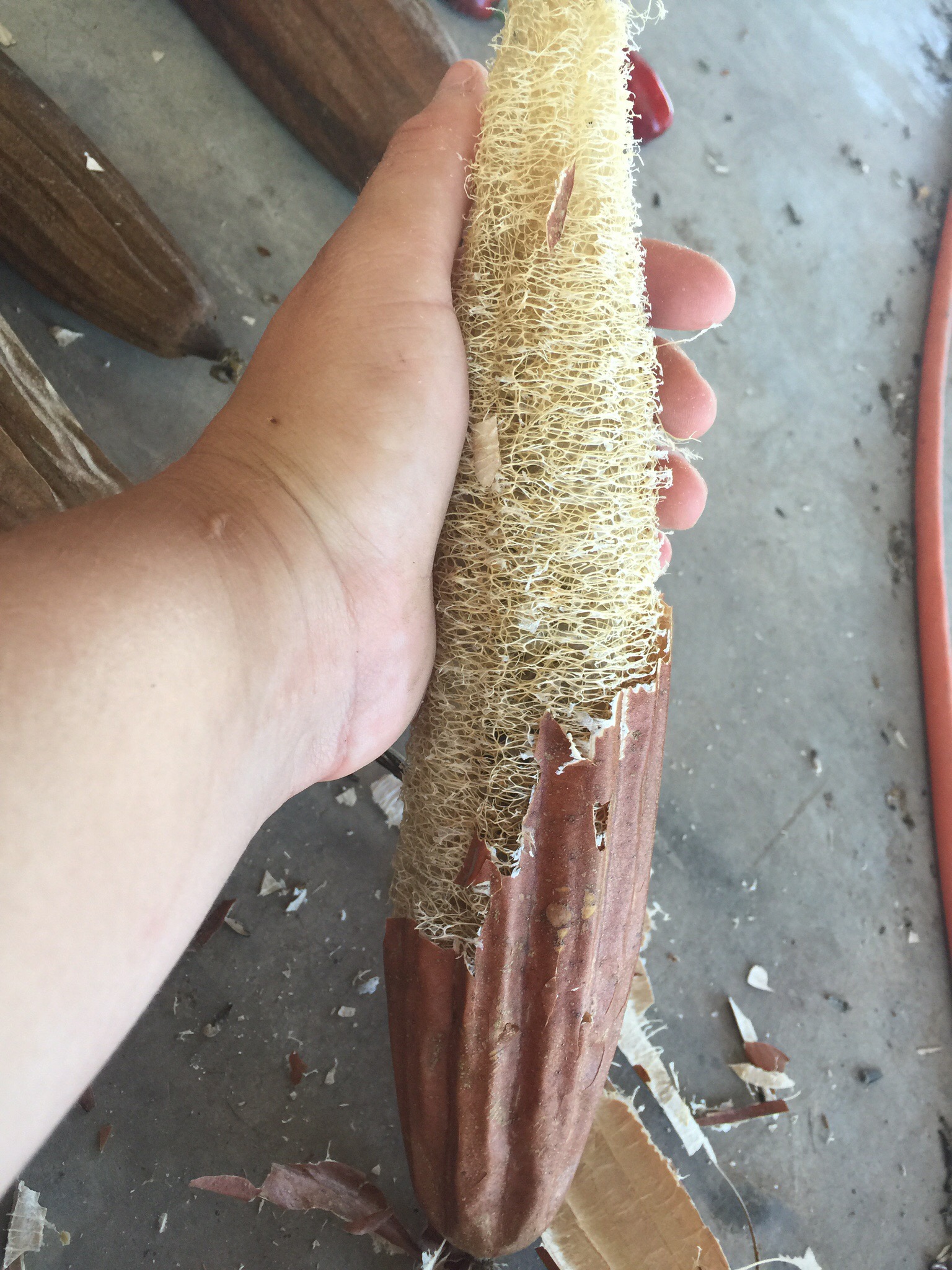 Then you peel off the shell through the membranes and underneith is the loofah.