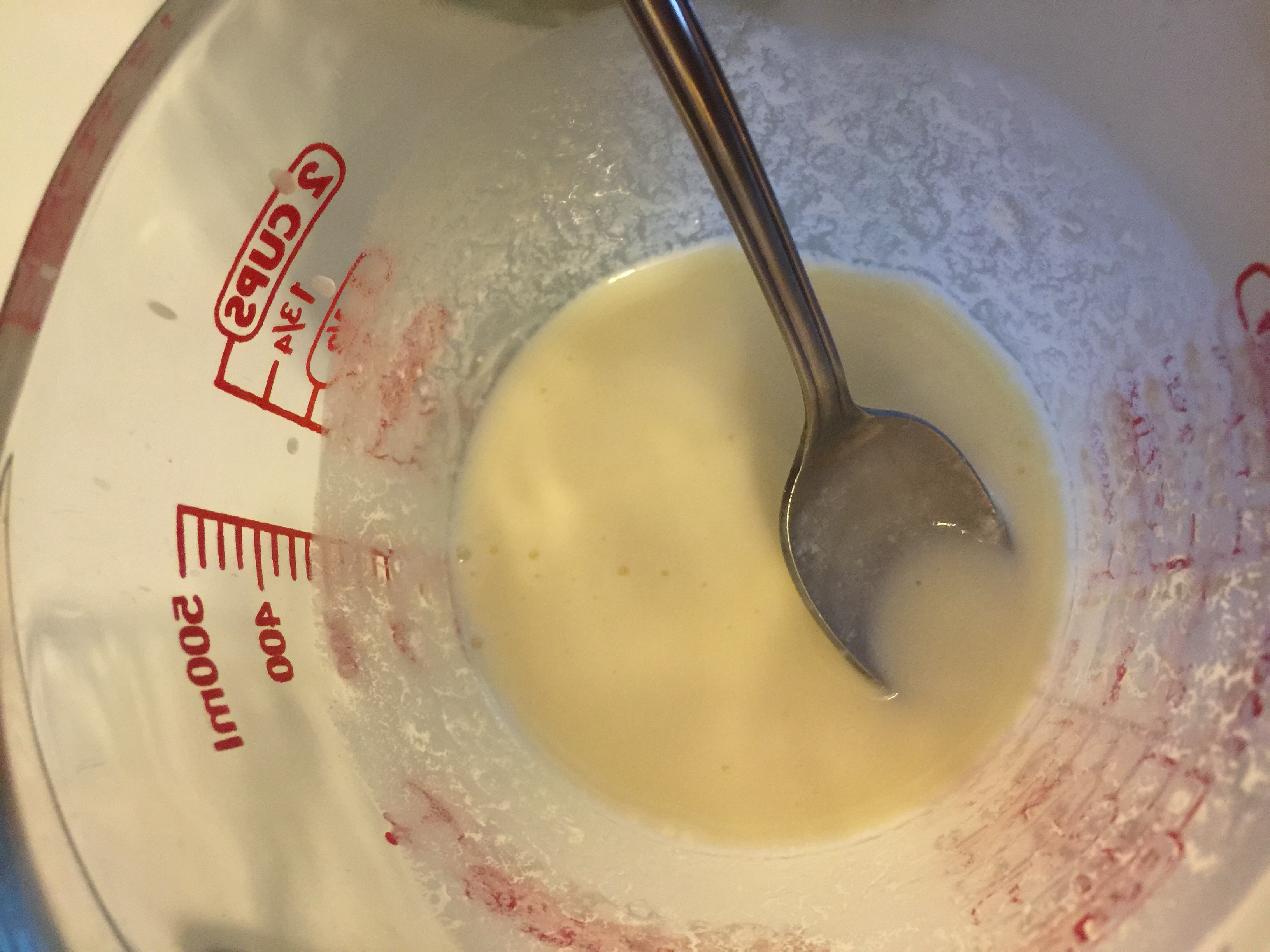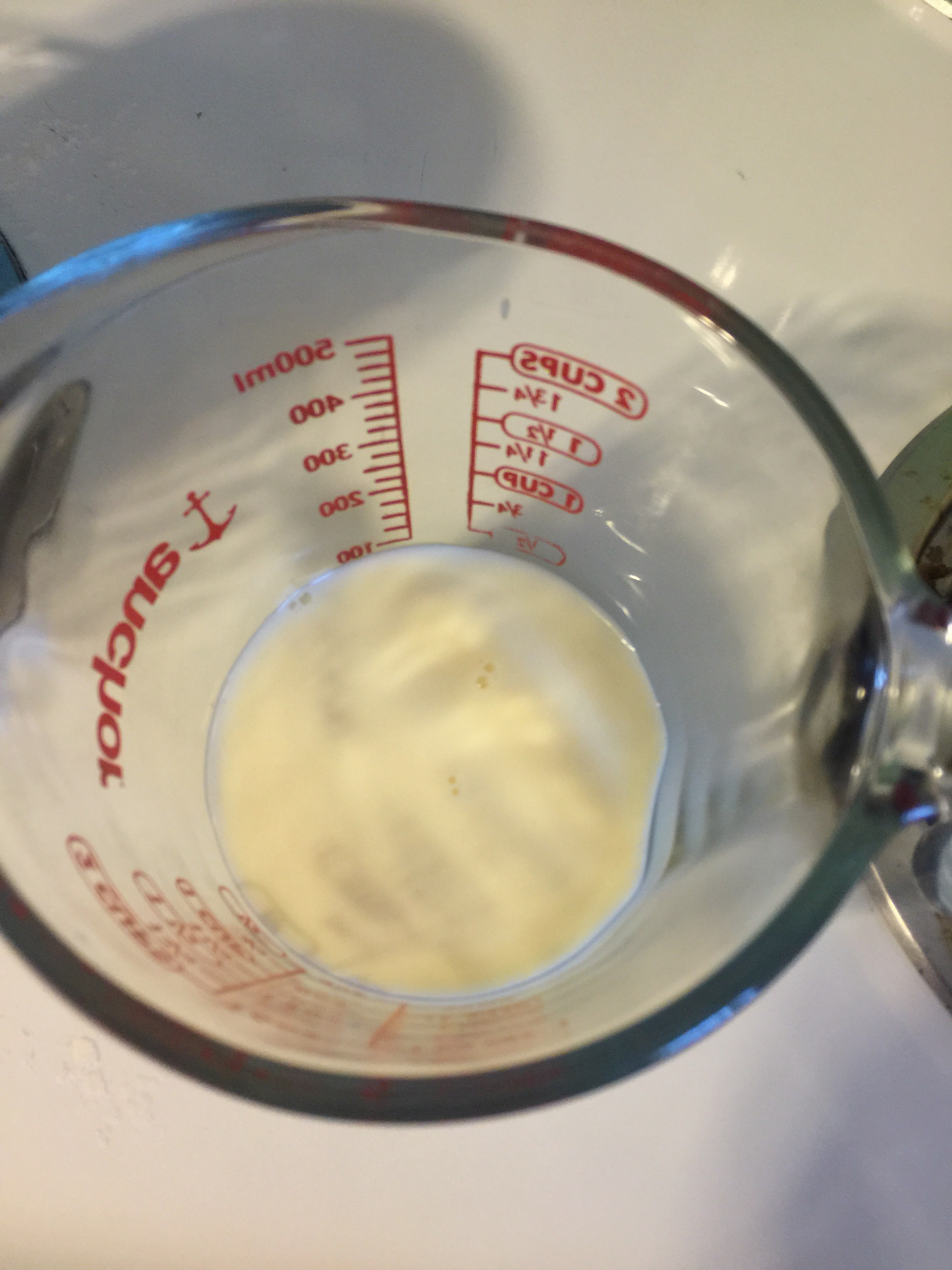 3. In a liquid measuring cup, measure out milk and then put in the vinegar – let sit until it has a lumpy consistency.